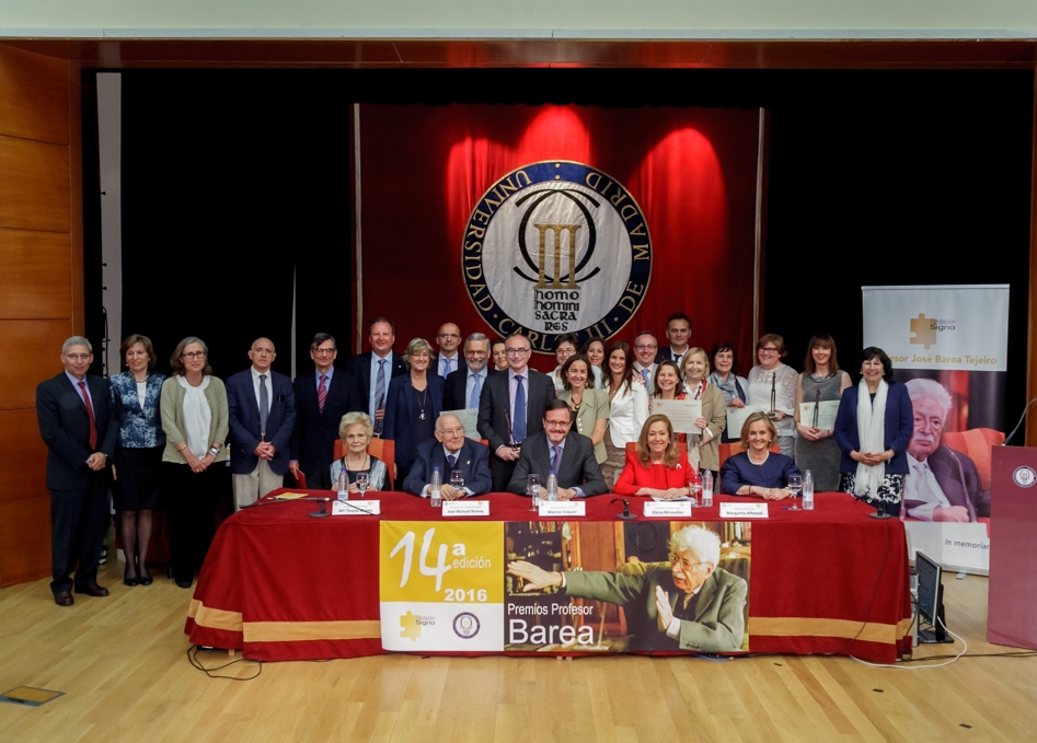 Likewise, the research study was also awarded with the Professor Barea Award in the Multi-entity Project category by the Fundación Signo. On 24th May 2016, the 14th Award Ceremony was held at the Carlos III University of Madrid assembly hall. The event started with speeches from Carlos III University Rector and the Foundation Chairman. The purpose of this foundation is to promote and fund proposals aimed at enhancing the management and assessment of health costs and to ensure professionals and society receive the tools required to assess and enhance healthcare service management.