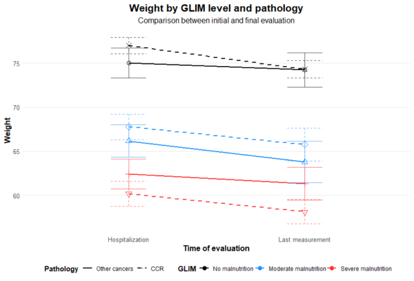 Barne hartutako 519 pazienteetatik, % 54,5ek ez zuten malnutriziorik, % 23,5ek moderatua eta % 22k larria, GLIMren arabera. Aldagai anitzeko analisiek erakutsi zuten malnutrizio moderatua eta larria 90 egunera eta urtebetera hilkortasun-arrisku handiagoarekin lotzen dela. Zehazki, malnutrizio ertaina eta larria zuten pazienteek 90 egunera hiltzeko arriskuaren bikoitza baino gehiago zuten, hurrenez hurren, eta malnutrizio larria zutenek, berriz, urtean hiltzeko % 68 arrisku handiagoa zuten. Hala ere, malnutrizioak ez du eraginik 30 eguneko heriotza-tasan, 90 eguneko ospitaleratzeetan, ez eta ospitaleratzean gertatzen diren konplikazio infekziosoetan edo nutrizio-neurrien aldaketetan ere.