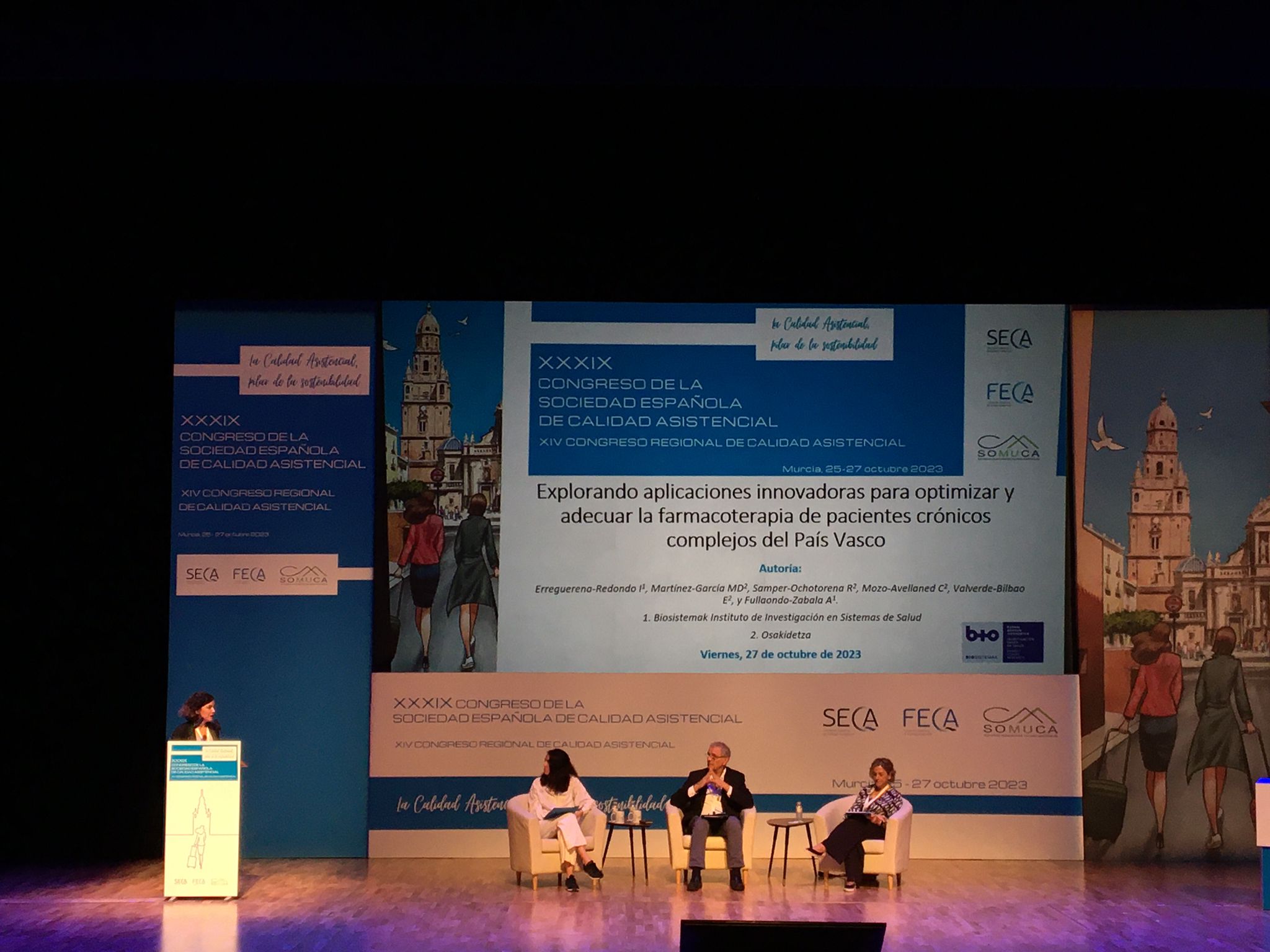 - Mesa mejores comunicaciones área temática “Seguridad del paciente” – Título: “Explorando aplicaciones innovadoras para optimizar y adecuar la farmacoterapia de pacientes crónicos complejos del País Vasco” – Comunicación oral larga realizada por Irati Erreguerena Redondo (Investigadora y gestora de proyectos)